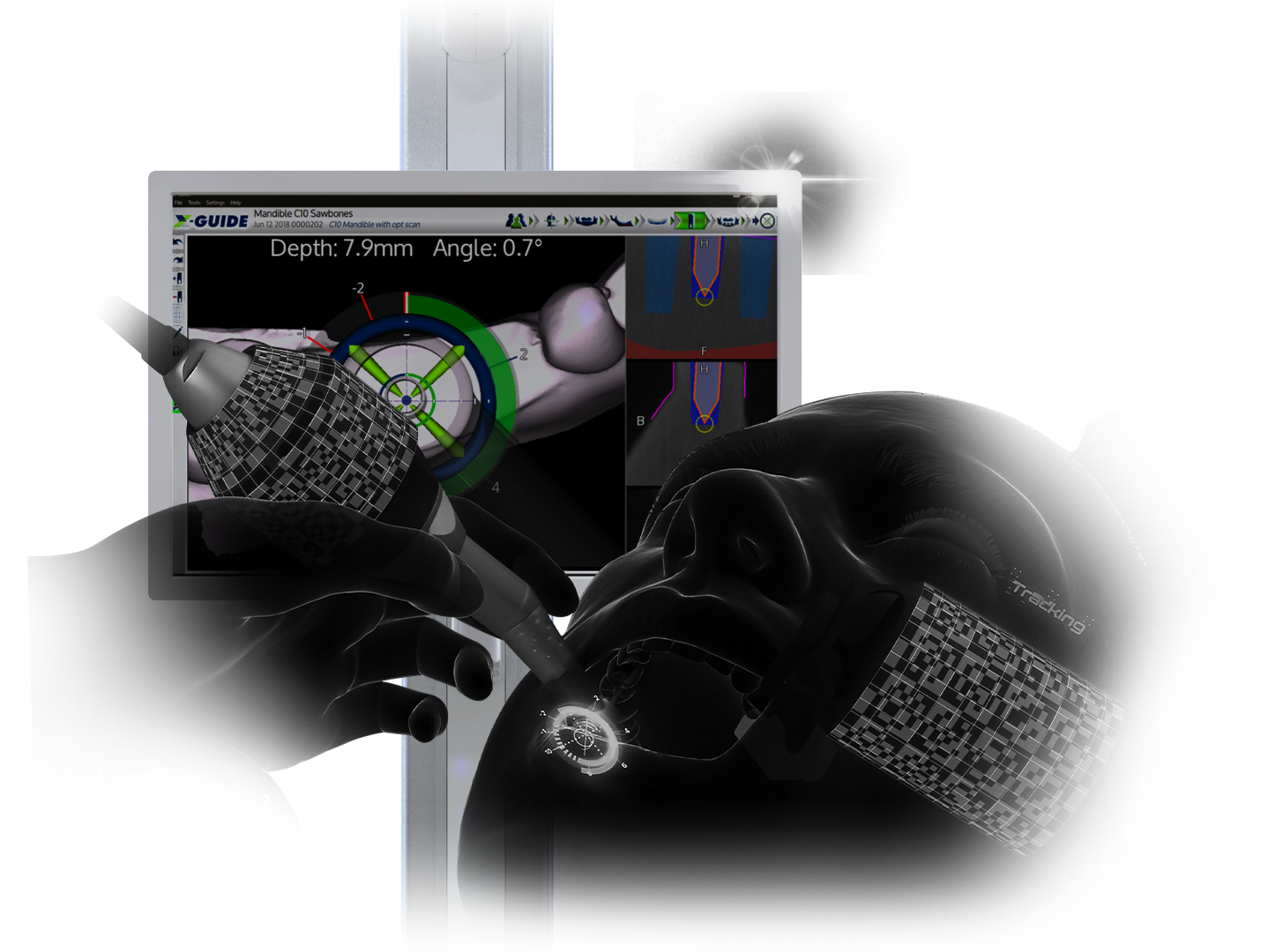 //O X-Guide é um sistema de navegação dinâmica 3D que permite a orientação interativa, em tempo real, da posição da broca durante a cirurgia, proporcionando-lhe a capacidade de melhorar a precisão da POSIÇÃO, ÂNGULO e PROFUNDIDADE do implante.